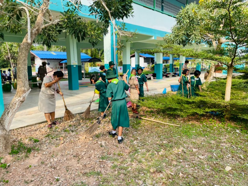 3 ก.พ 64 ผอ.นวลจันทร์ พุ่มพวง พร้อมคณะครูบุคลากรทางการศึกษา และนักเรียน "Big Cleaning Day" บริเวณในโรงเรียนบ้านหาดทรายรี