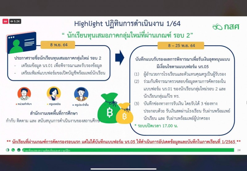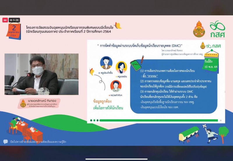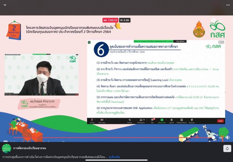2 พฤศจิกายน 2564 นางสาวนวลจันทร์พุ่มพวง ผู้อำนวยการโรงเรียนบ้านหาดทรายรี มอบหมายให้ ครูอาริตา หนูแข ครูรับผิดชอบงานทุน กสศ. เข้าร่วมประชุมการดำเนินงาน โครงการจัดสรรเงินอุดหนุนนักเรียนยากจนพิเศษแบบมีเงื่อนไข (นักเรียนทุนเสมอภาค) ภาคเรียนที่ 2 ปีการศึกษา 25