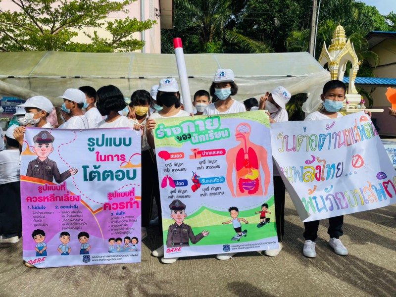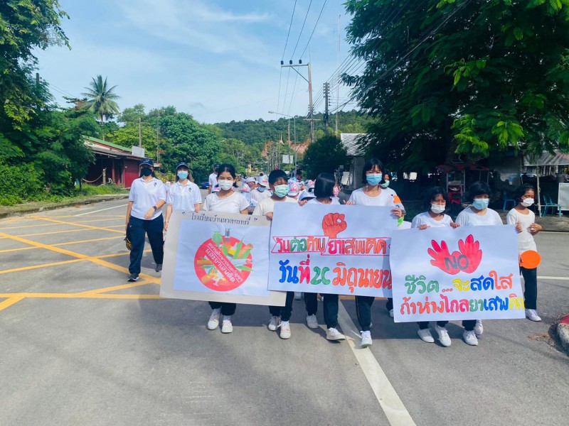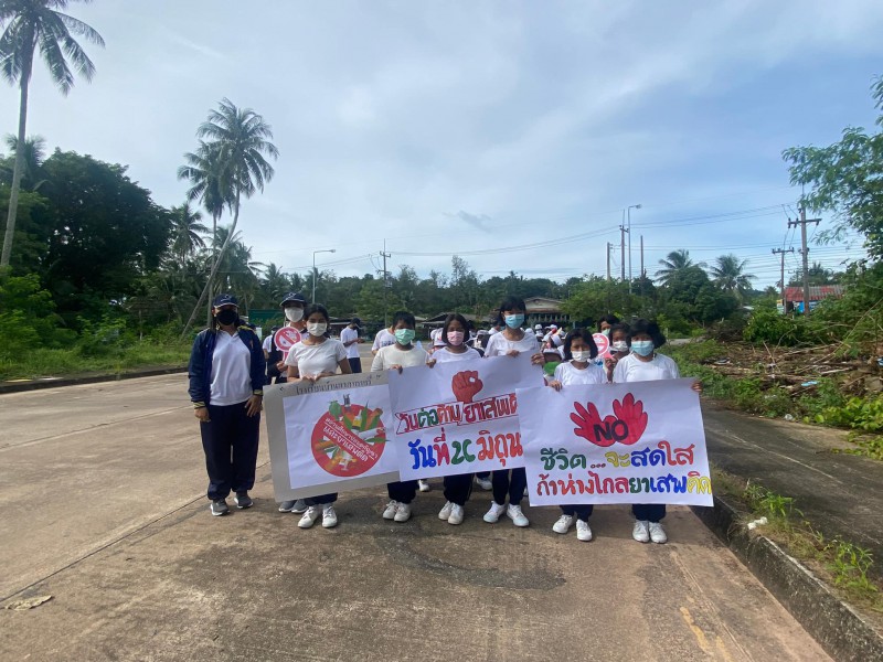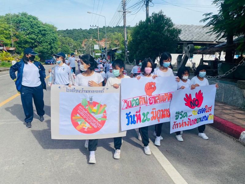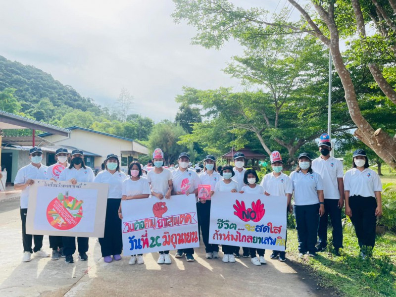 24 มิถุนายน 2565 นางสาวนวลจันทร์ พุ่มพวง ผู้อำนวยการโรงเรียน พร้อมด้วยคณะครู นักเรียน ดำเนินกิจกรรม วันต่อต้านยาเสพติด (26 มิถุนายน) ประจำปี 2565