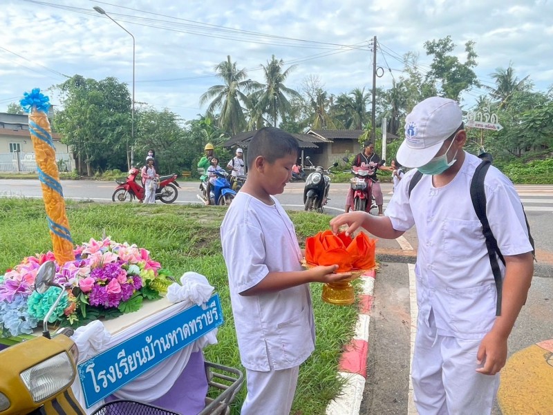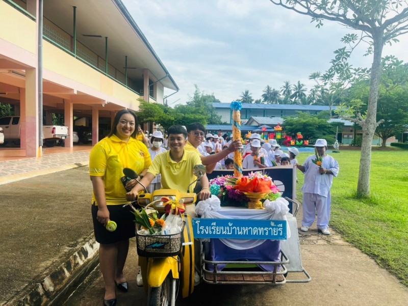 กิจกรรมถวายเทียนพรรษา เนื่องในวันเข้าพรรษา ผู้อำนวยการโรงเรียนบ้านหาดทรายรี นางสาวนวลจันทร์ พุ่มพวง พร้อมด้วยคณะครูเเละนักเรียน จัดกิจกรรมถวายเทียนพรรษา พร้อมถวายปัจจัย ณ วัดเขตอุดมศักดิ์วนาราม เพื่อเป็นการส่งเสริมคุณธรรมเเละจริยธรรมพร้อมทั้ง