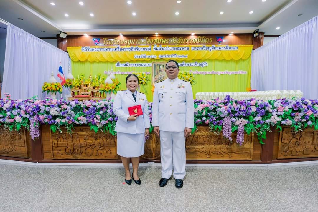 วันอังคาร ที่ ๒๒ พฤศจิกายน ๒๕๖๕ นางสาวนวลจันทร์ พุ่มพวง ผู้อำนวยการโรงเรียนบ้านหาดทรายรี เข้าพิธีรับพระราชทานเครื่องราชอิสริยาภรณ์ชั้นต่ำกว่าสายสะพายและเหรียญ จักรพรรดิมาลา ประจำปี ๒๕๖๓ และ ประจำปี ๒๕๖๔ เบื้องหน้าพระบรมฉายาลักษณ์พระบาทสมเด็จพระเจ้าอยู่หัว