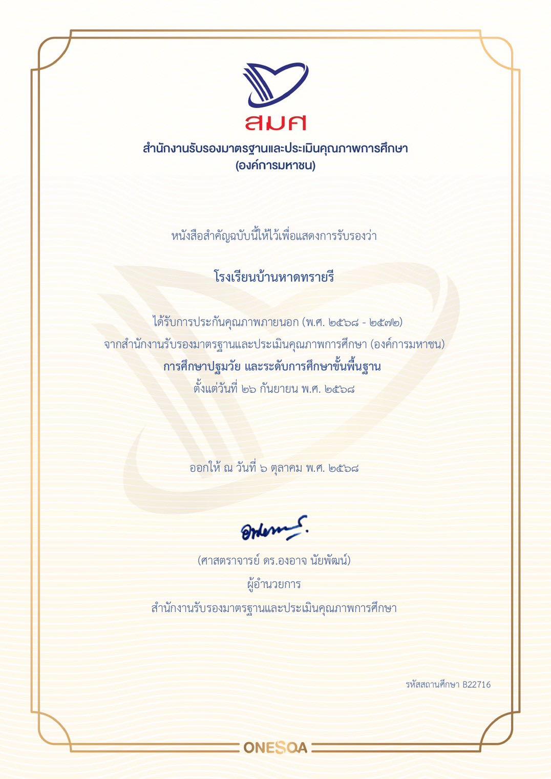 | ขอแสดงความยินดีกับ โรงเรียนบ้านหาดทรายรี ได้รับการประกันคุณภาพภายนอก (พ.ศ.๒๕๖๘-๒๕๗๒) จากสำนักงานรับรองมาตรฐานและประเมินคุณภาพการศึกษา (องค์การมหาชน) #การศึกษาปฐมวัยและระดับการศึกษาขั้นพื้นฐาน ?✨ |