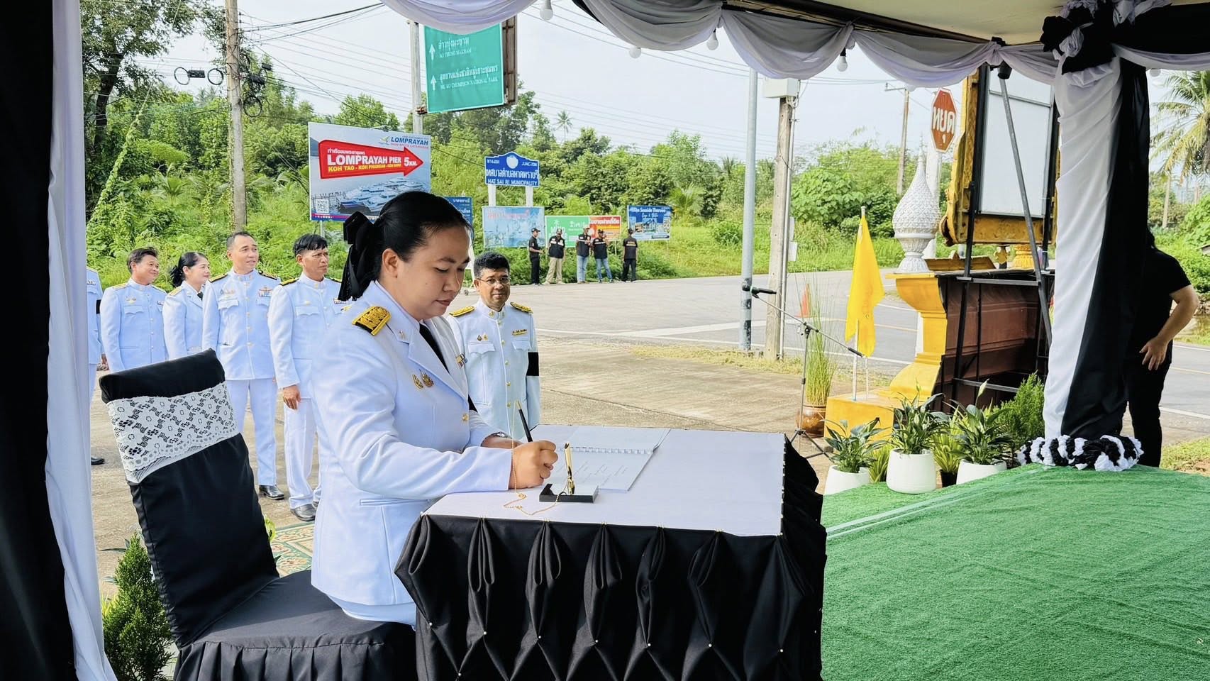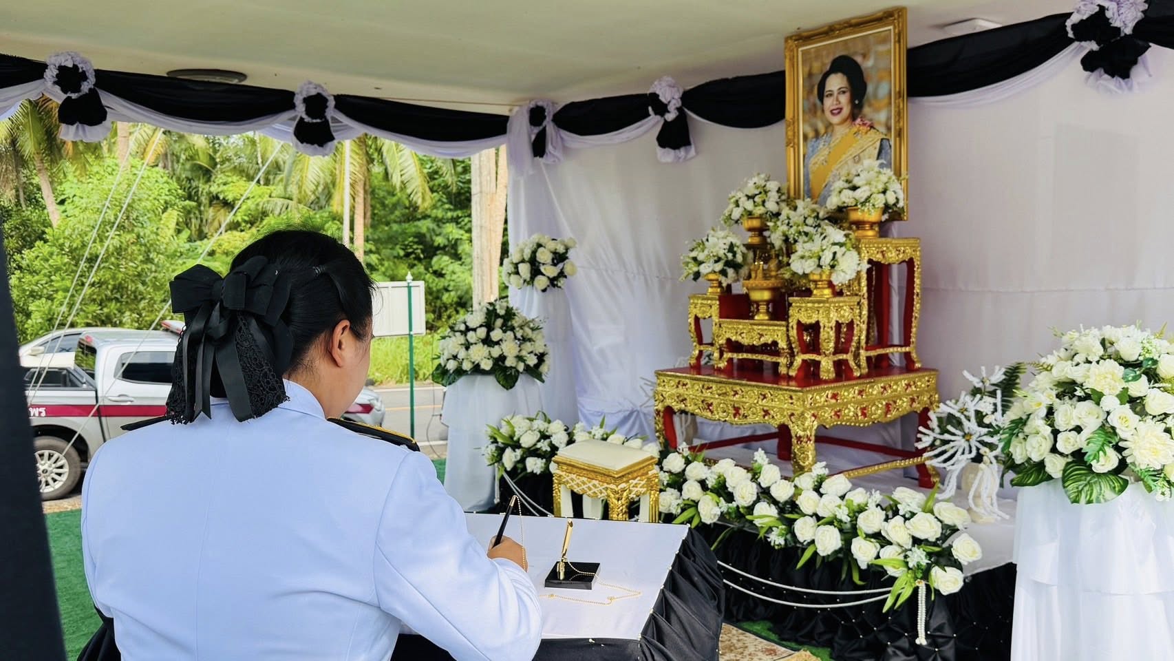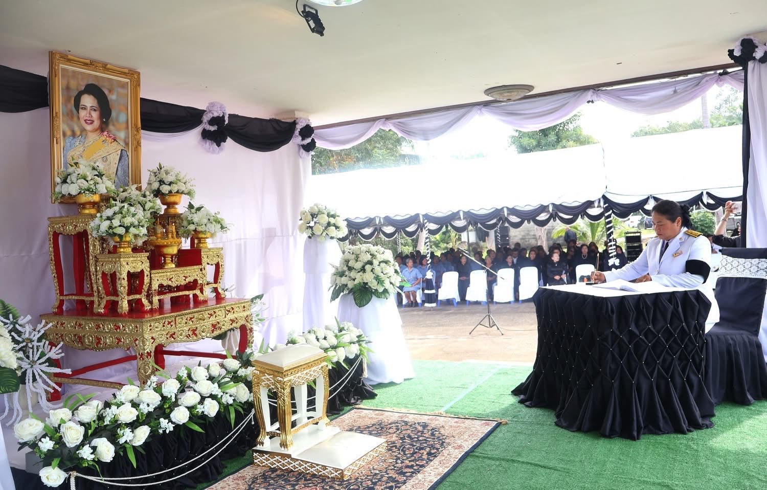 วันพุธที่ 12 พฤศจิกายน 2568 นางสาวนวลจันทร์ พุ่มพวง ผู้อำนวยการโรงเรียนบ้านหาดทรายรี พร้อมด้วยนางสาวสุพิชญา สง่า ครูโรงเรียนบ้านหาดทรายรี ได้เข้าร่วมพิธีถวายความอาลัยสมเด็จพระนางเจ้าสิริกิต์ พระบรมราชินีนาถ พระบรมราชชนนีพันปีหลวง ณ บริเวณลานหน้าเทศบาลตำบล