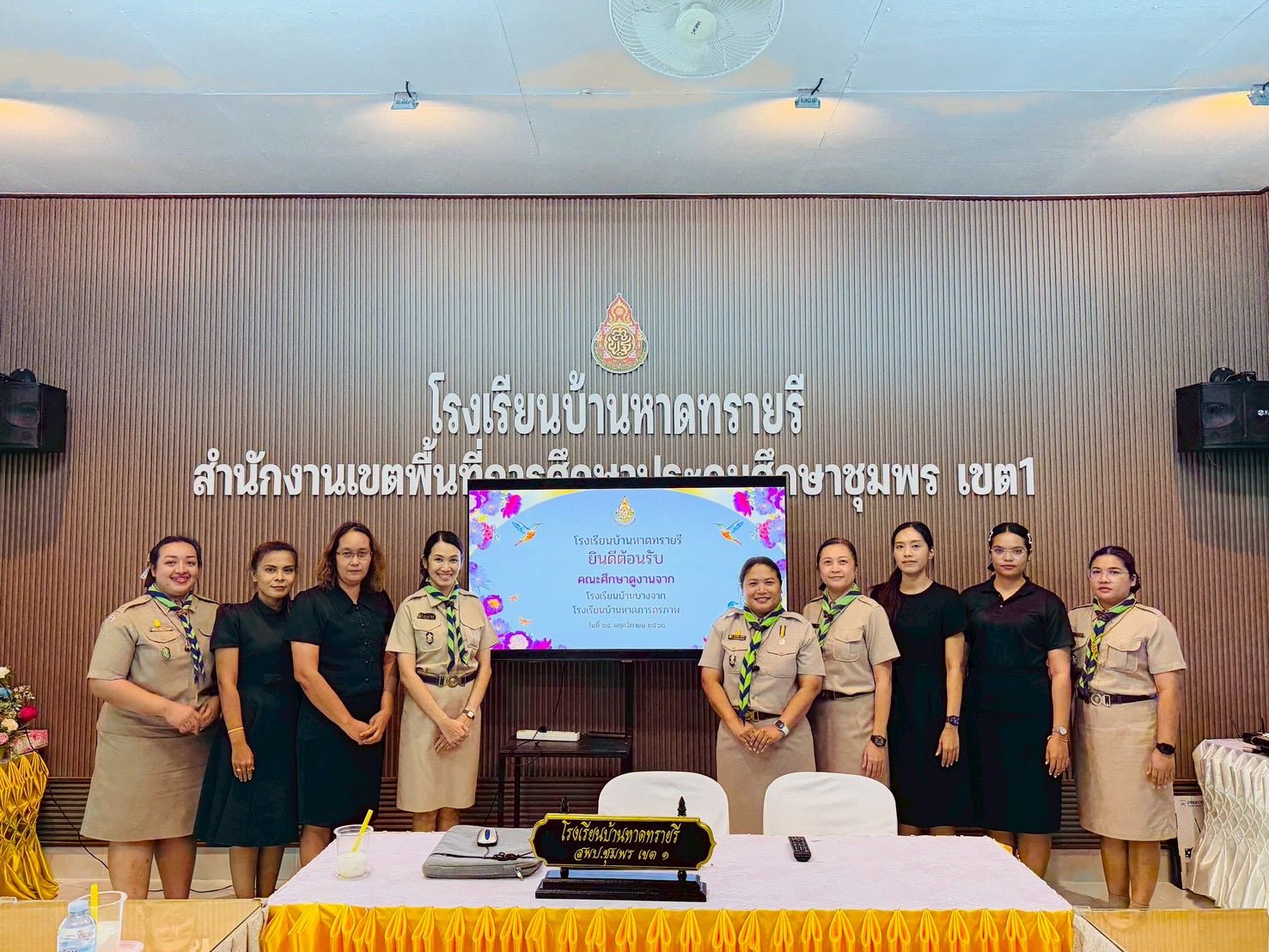 วันอังคารที่ 25 พฤศจิกายน 2568 นำโดยนางสาวนวลจันทร์ พุ่มพวง ผู้อำนวยการโรงเรียนบ้านหาดทรายรี พร้อมด้วยคณะครูและบุคลากรทางการศึกษาโรงเรียนบ้านหาดทรายรี ได้ทำการต้อนรับคณะศึกษาดูงานจาก โรงเรียนบ้านบางจาก และโรงเรียนบ้านหาดภารดรภาพ ในเรื่องสถานศึกษาสีขาว ปลอ