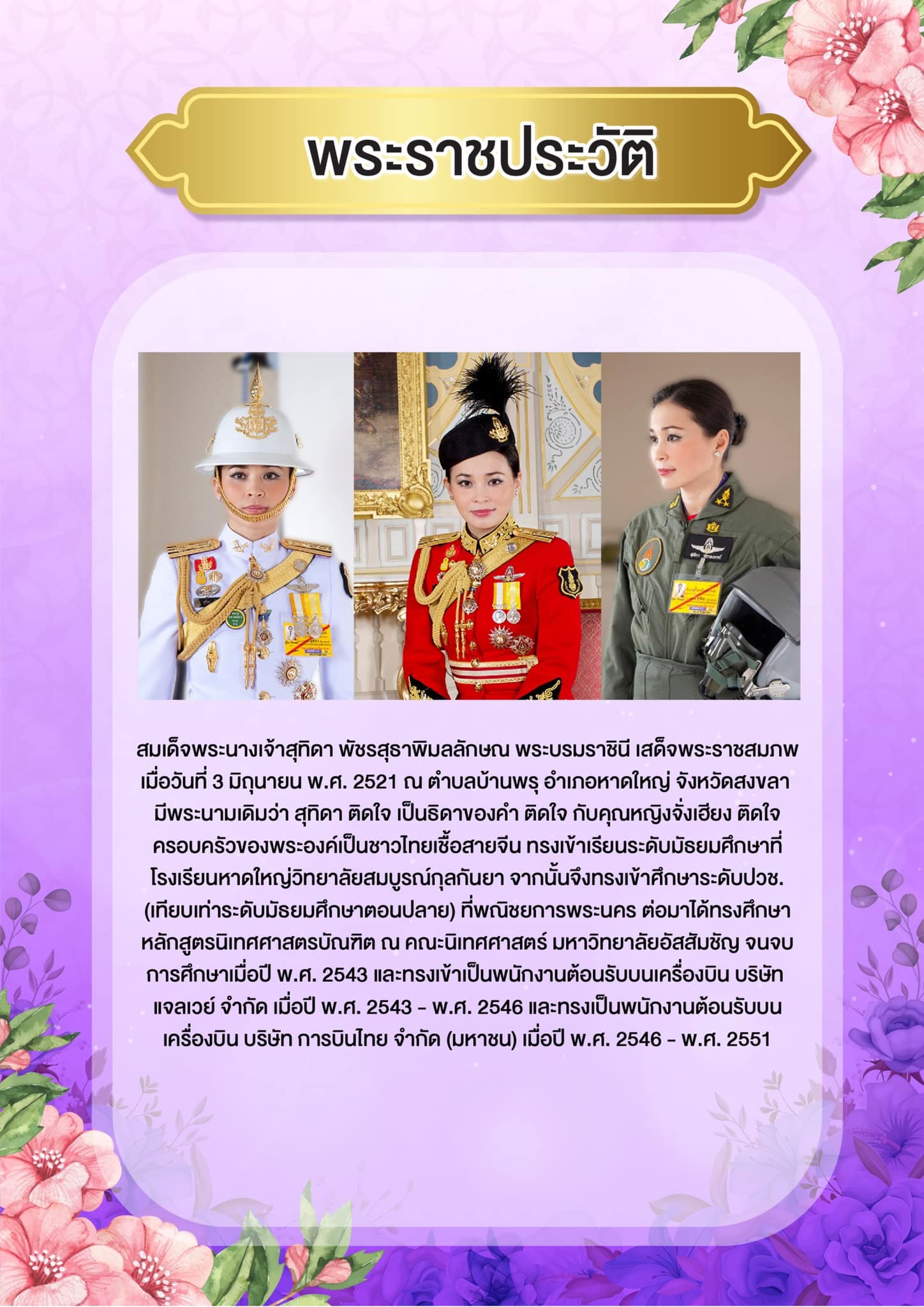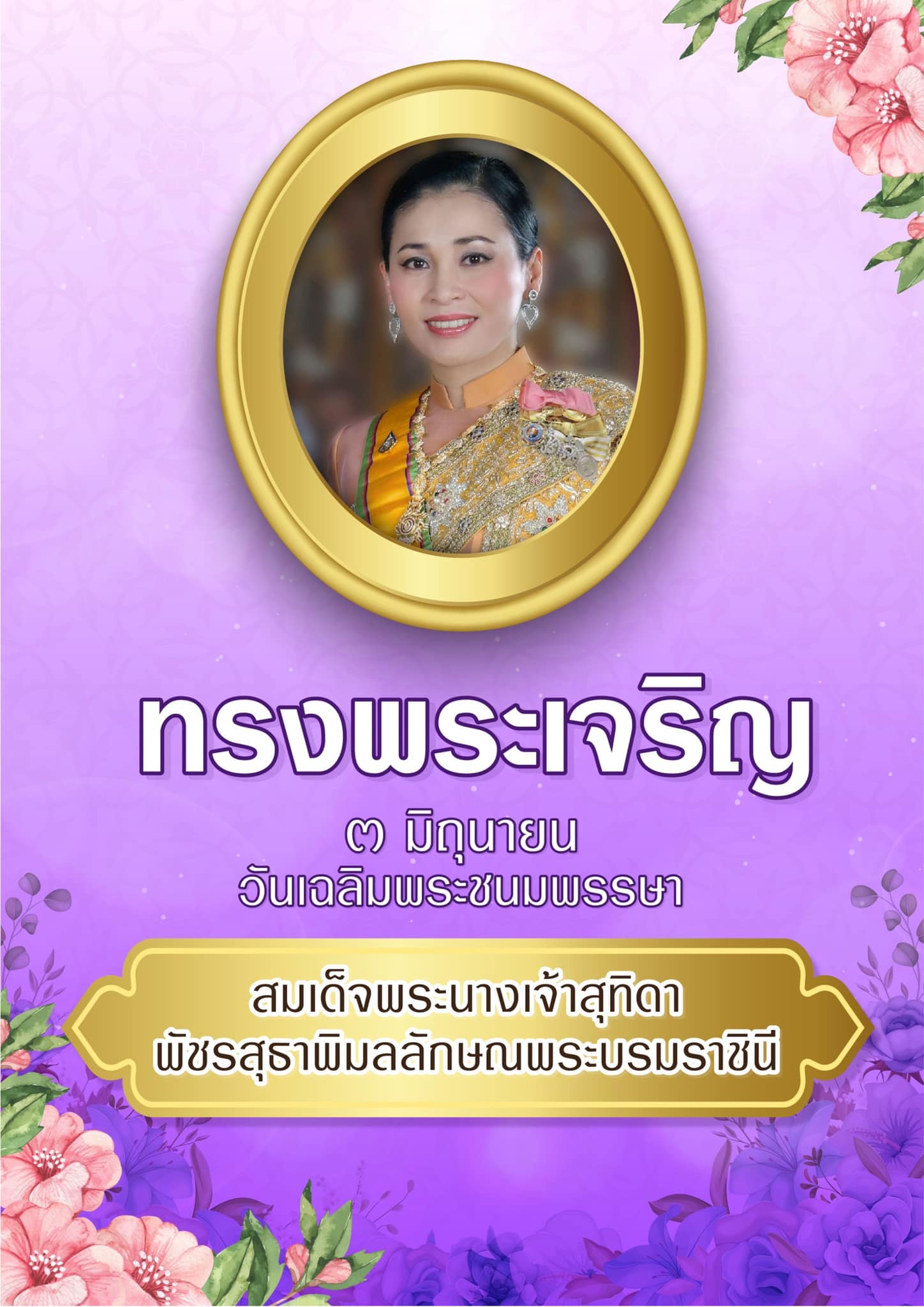 พระราชกรณียกิจ สมเด็จพระนางเจ้าสุทิดา พัชรสุธาพิมลลักษณ พระบรมราชินี เพื่อเป็นการเฉลิมพระเกียรติและร่วมแสดงความจงรักภักดี เนื่องในโอกาสวันเฉลิมพระชนมพรรษา ๓ มิถุนายน |