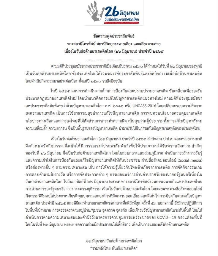 ยาเสพติดนี่มันก่อให้เกิดความเดือดร้อนหลายอย่าง โดยที่ไม่ได้ตั้งใจ ทั้งราชการ ตำรวจ โดยโรงพยาบาล โดยคน เอกชนต่าง ๆ เดือดร้อนหมด และสิ้นเปลือง คนทั่วประเทศก็สิ้นเปลือง