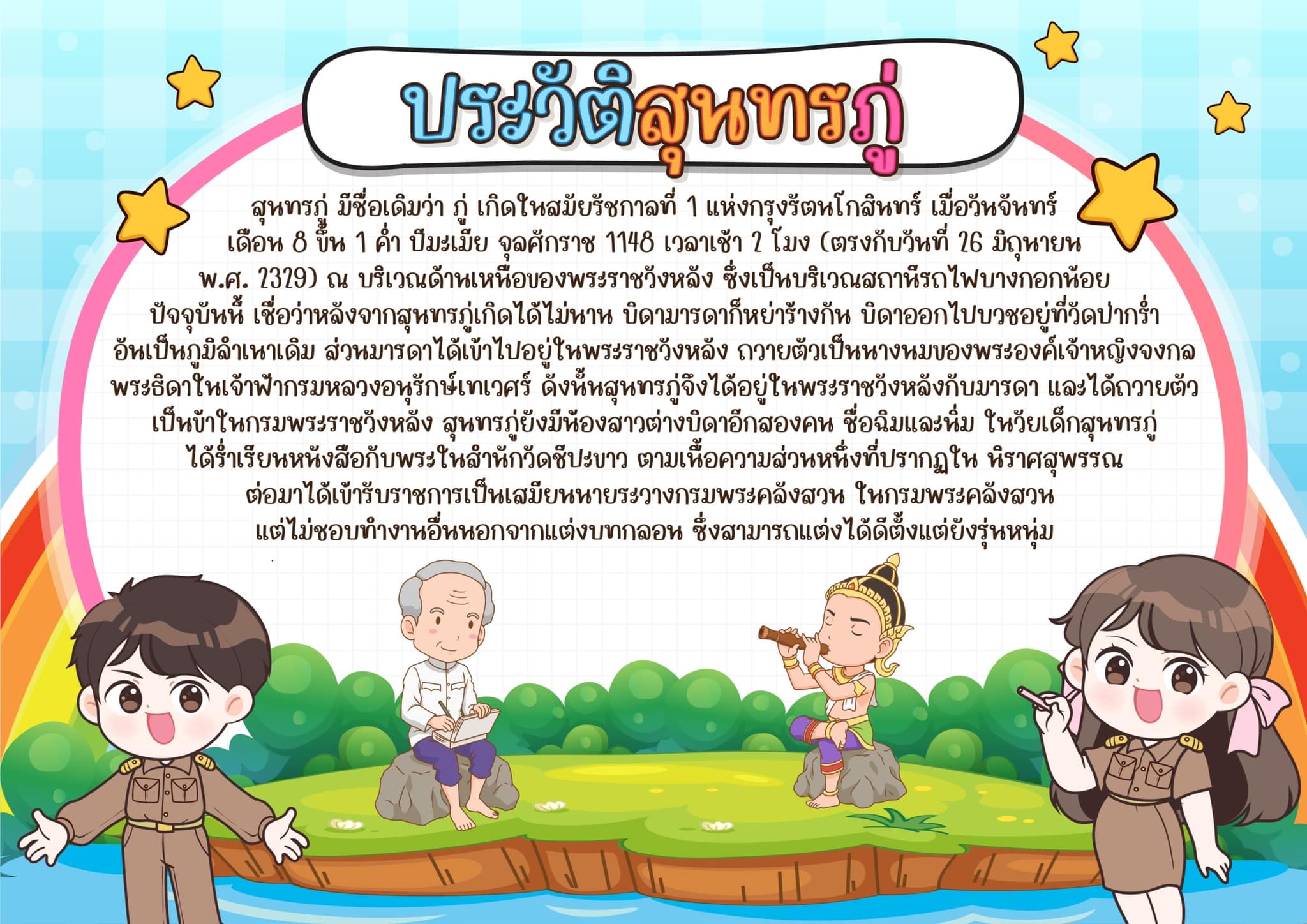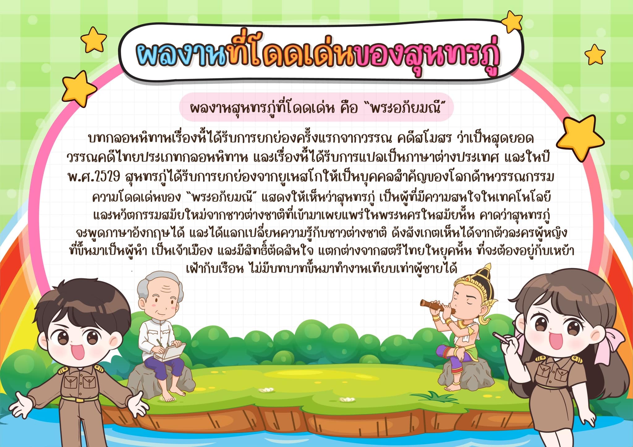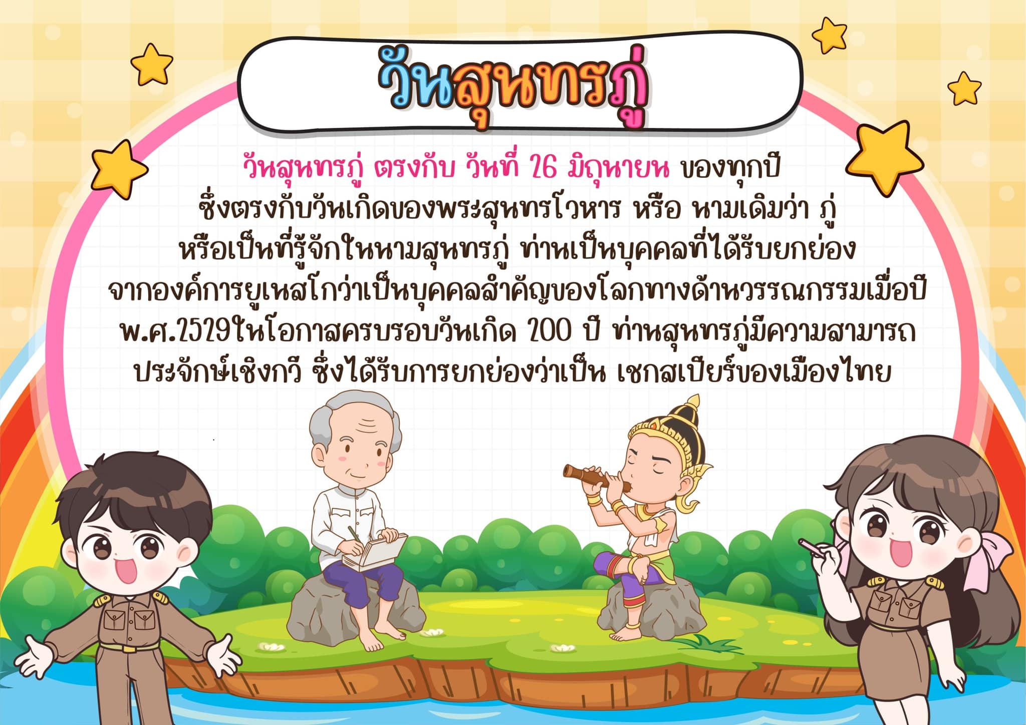 วันที่ 26 มิถุนายน" ของทุกปีคือ "วันสุนทรภู่" องค์การศึกษาวิทยาศาสตร์และวัฒนธรรมแห่งสหประชาชาติ(UNESCO)