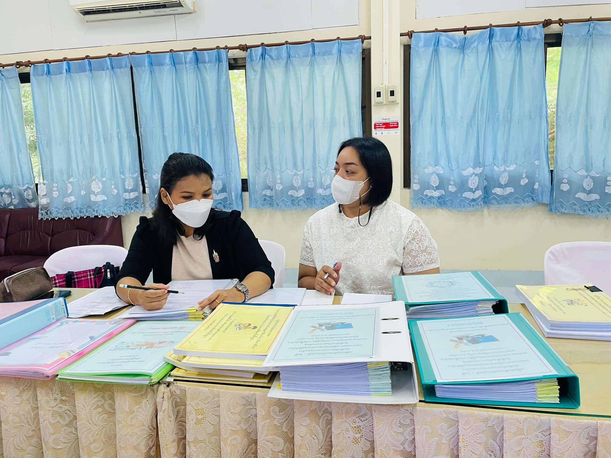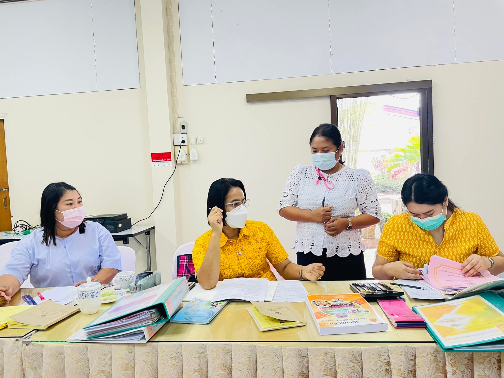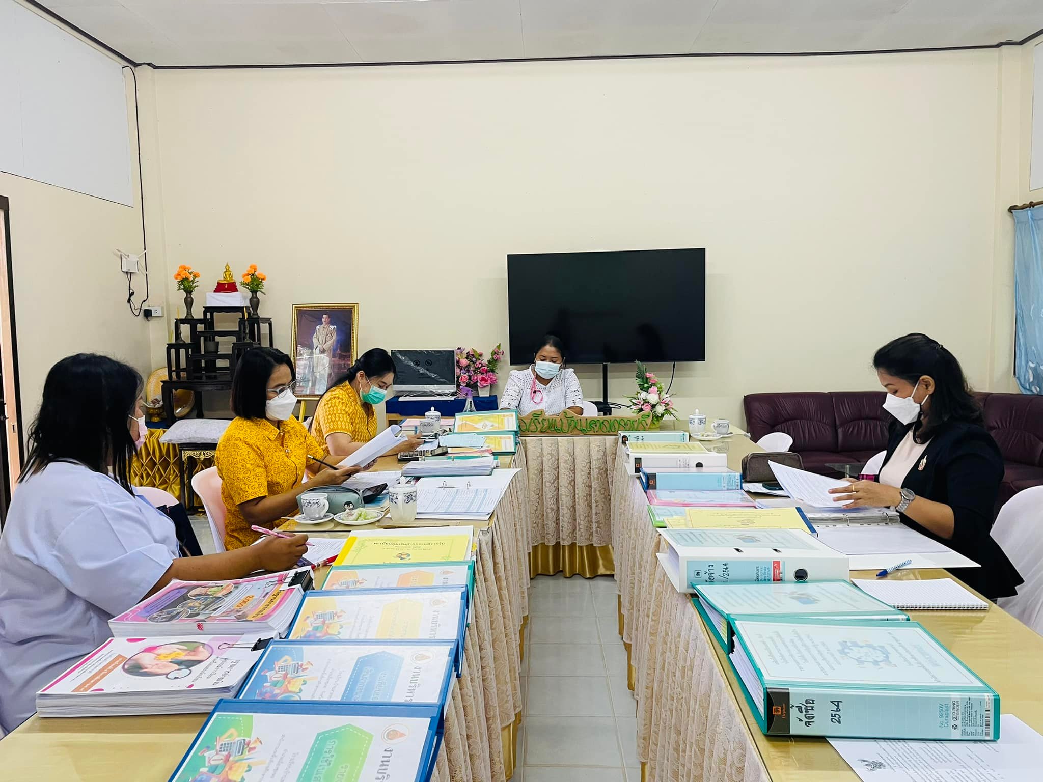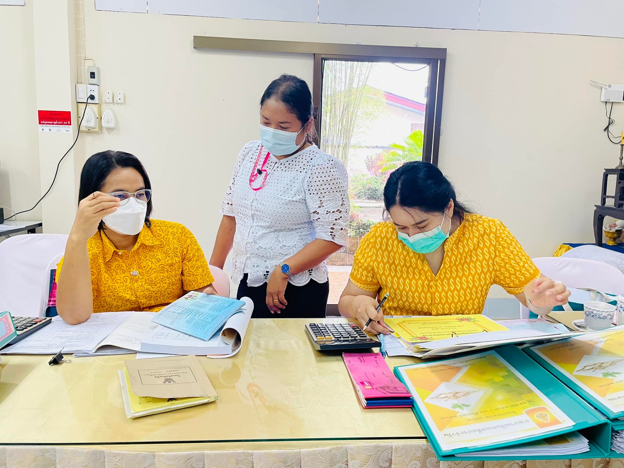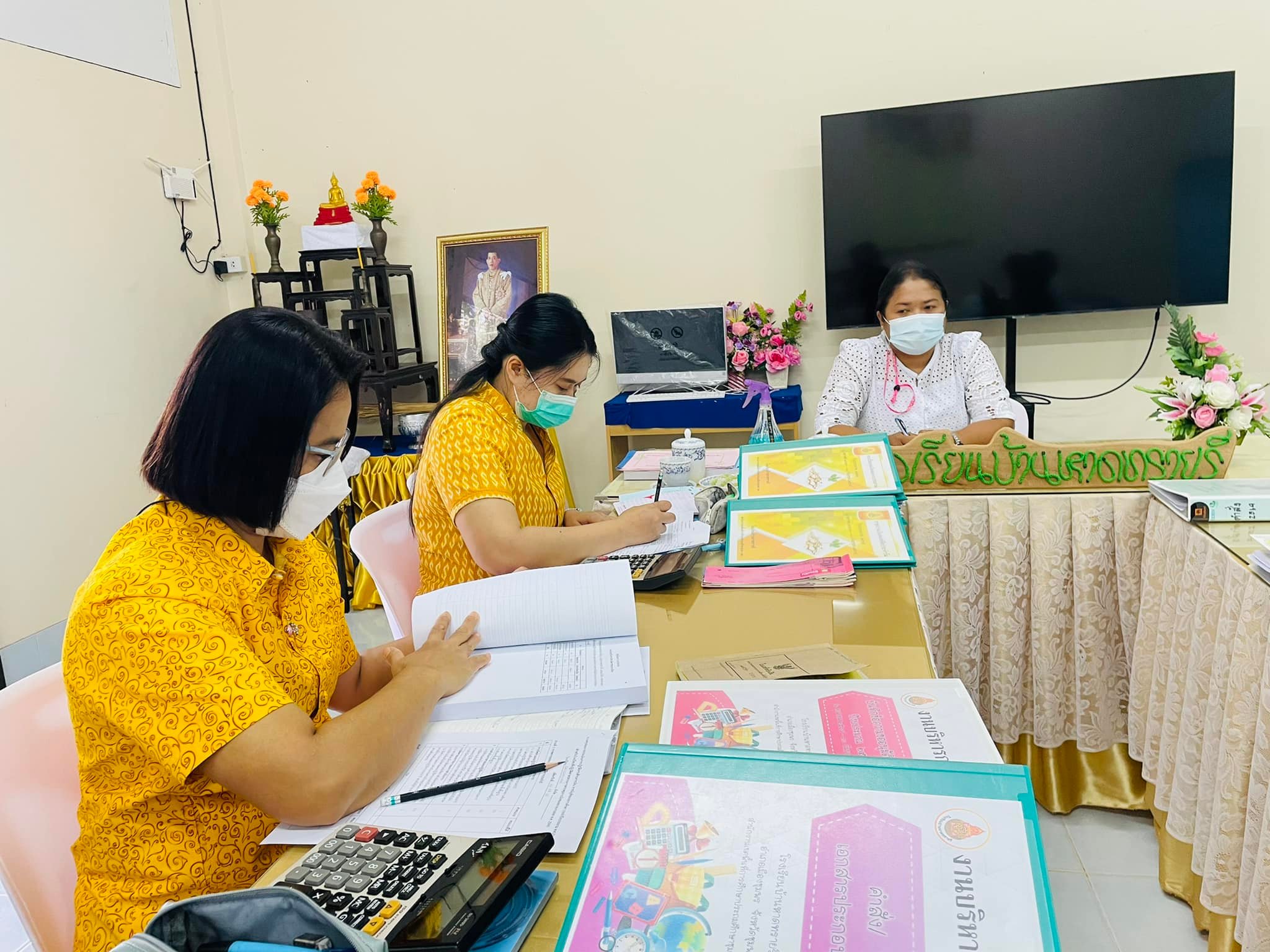 นางสาวนวลจันทร์ พุ่มพวง ผู้อำนวยการโรงเรียน พร้อมด้วยนางสาวดวงพรทิพย์ ยมโชติ และนางสาวชุติมา ชูแสง ครูผู้รับผิดชอบงานงบประมาณ การบริหารสินทรัพย์ รับการตรวจสอบการบริหารงบประมาณ การเงิน บัญชี และบริหารสินทรัพย์ของสถานศึกษา ประจำปีงบประมาณ 2565 จากหน่วยตรวจส