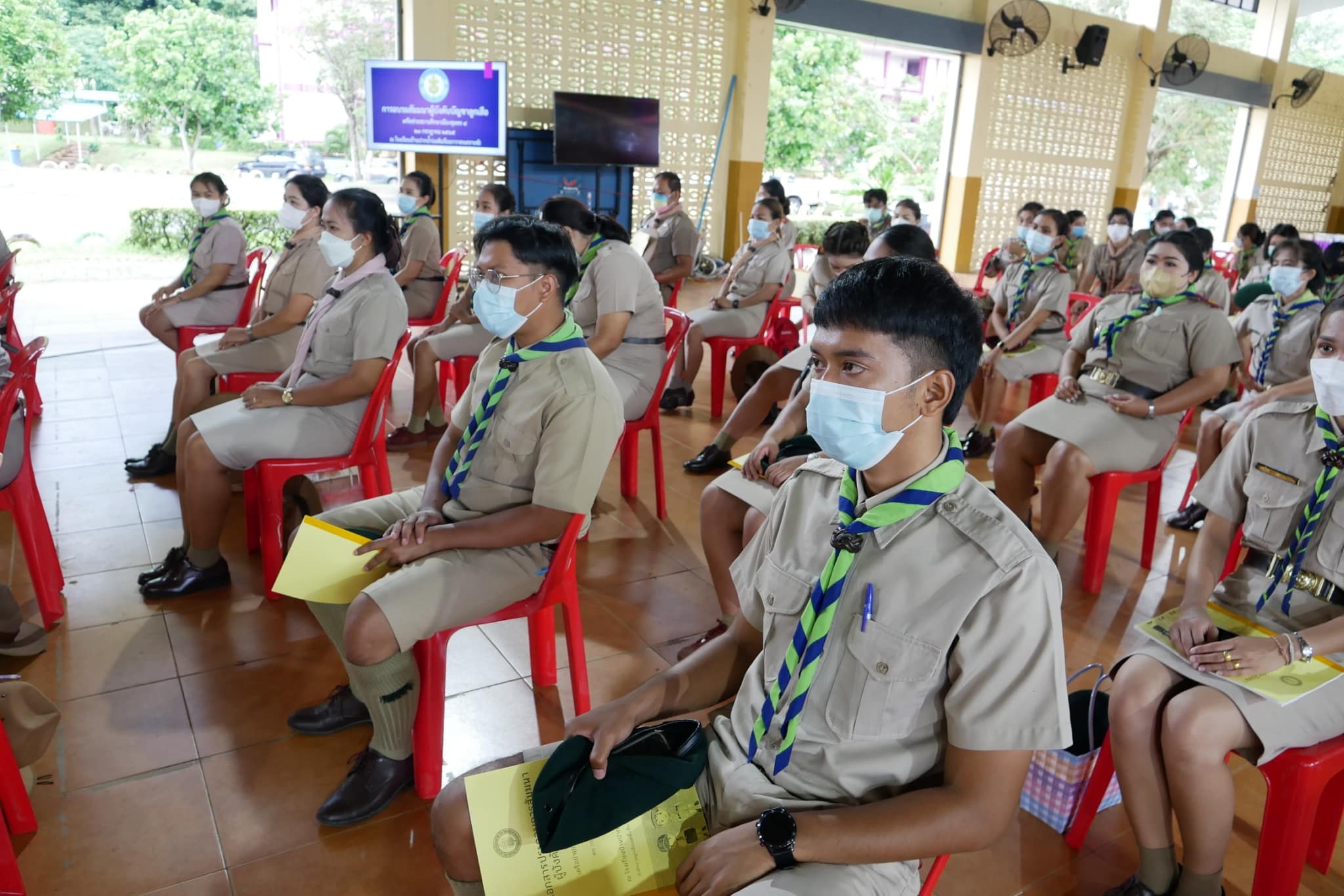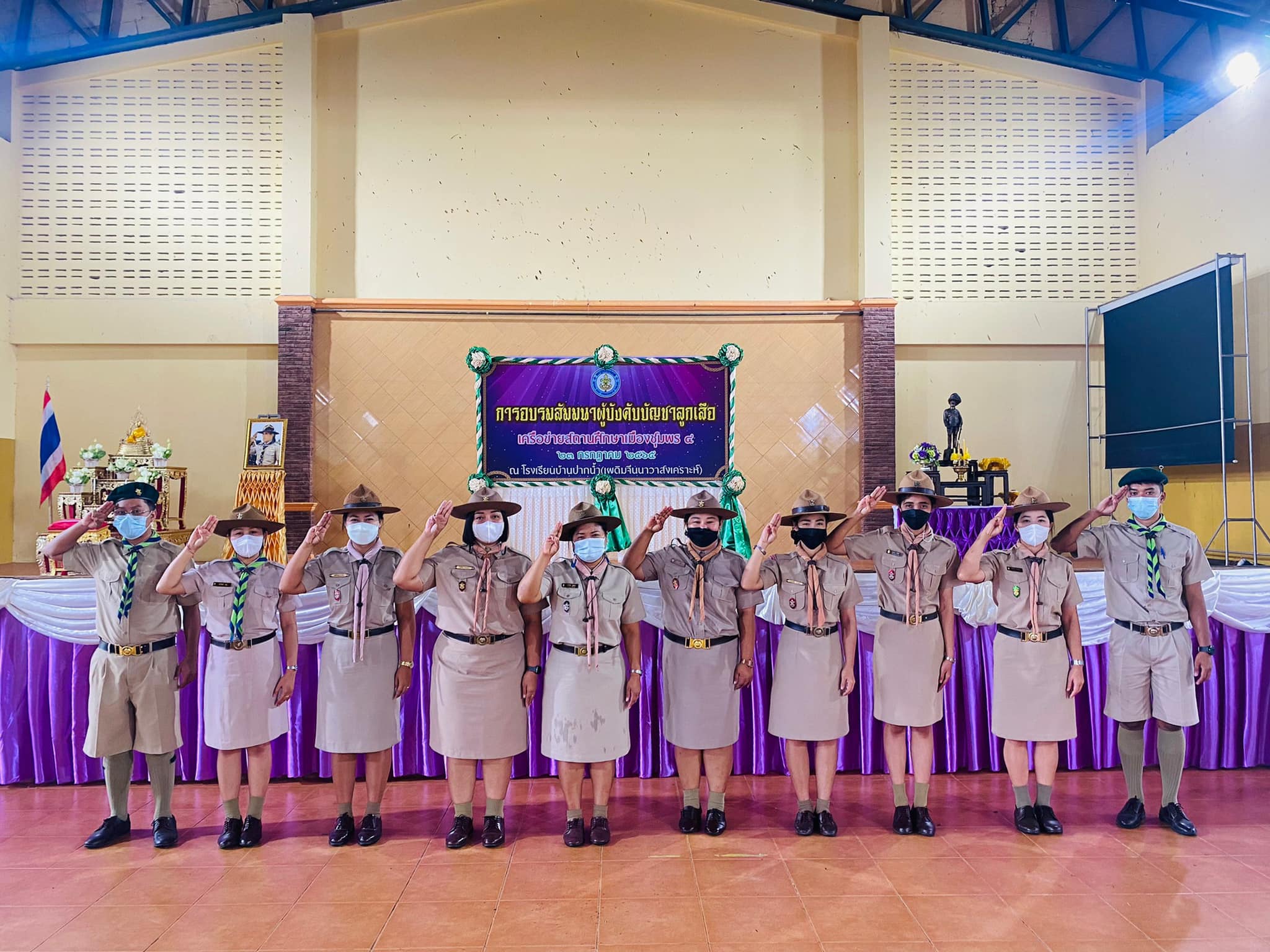 23 ก.ค 65 น.ส.นวลจันทร์ พุ่มพวง ผู้อำนวยการโรงเรียน พร้อมด้วยคณะครู เข้าร่วมอบรมสัมมนาเพื่อทบทวนความรู้ผู้บังคับบัญชาลูกเสือ เครือข่ายสถานศึกษาเมือง 4 ณ อาคารอเนกประสงค์ โรงเรียนบ้านปากน้ำ (เผดิมจีนนาวาสงเคราะห์)