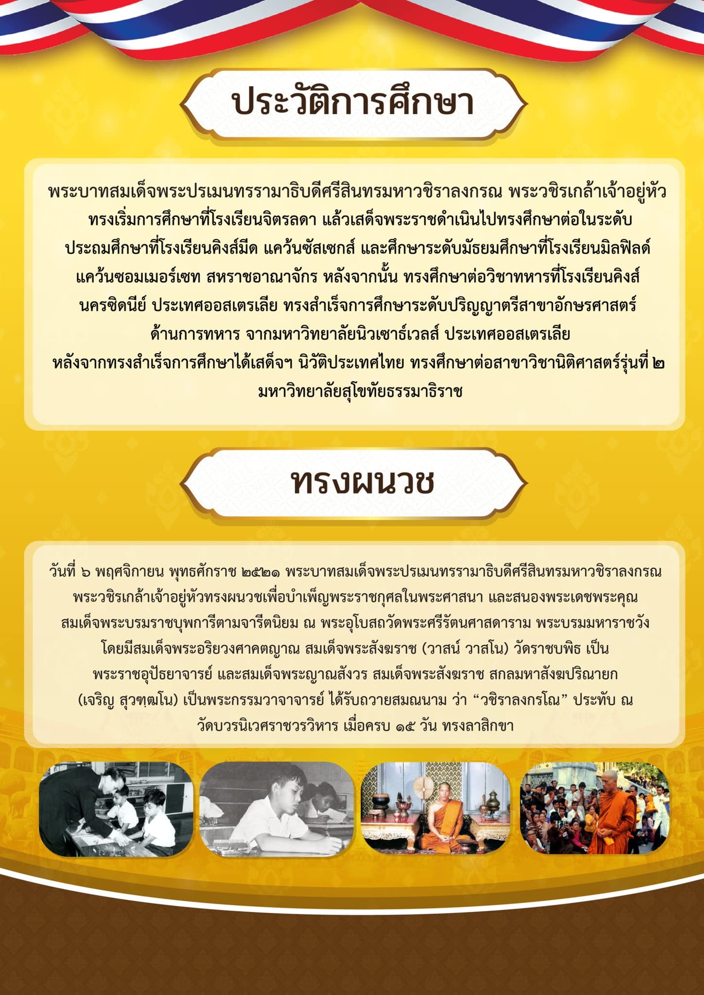 วันที่ 28 กรกฎาคม 2565 นี้ ถือเป็นช่วงเวลาที่มีความหมายอย่างยิ่งสำหรับคนไทยทุกคน ในโอกาสวันเฉลิมพระชนมพรรษา ของพระบาทสมเด็จพระปรเมนทรรามาธิบดีศรีสินทรมหาวชิราลงกรณ พระวชิรเกล้าเจ้าอยู่หัว ในหลวงรัชกาลที่ 10 พระบาทสมเด็จพระวชิรเกล้าเจ้าอยู่หัวเป็นพระราชโอรสพระองค์เดียวในพระบาทสมเด็จพระมหาภูมิพลอดุลยเดชมหาราช บรมนาถบพิตร และสมเด็จพระนางเจ้าสิริกิติ์ พระบรมราชินีนาถ พระบรมราชชนนีพันปีหลวง เสด็จพระราชสมภพ ณ พระที่นั่งอัมพรสถาน พระราชวังดุสิต เมื่อวันจันทร์ที่ 28 กรกฎาคม พ.ศ. 2495 ได้รับพระราชทานพระนามว่า สมเด็จพระเจ้าลูกยาเธอ เจ้าฟ้าวชิราลงกรณ