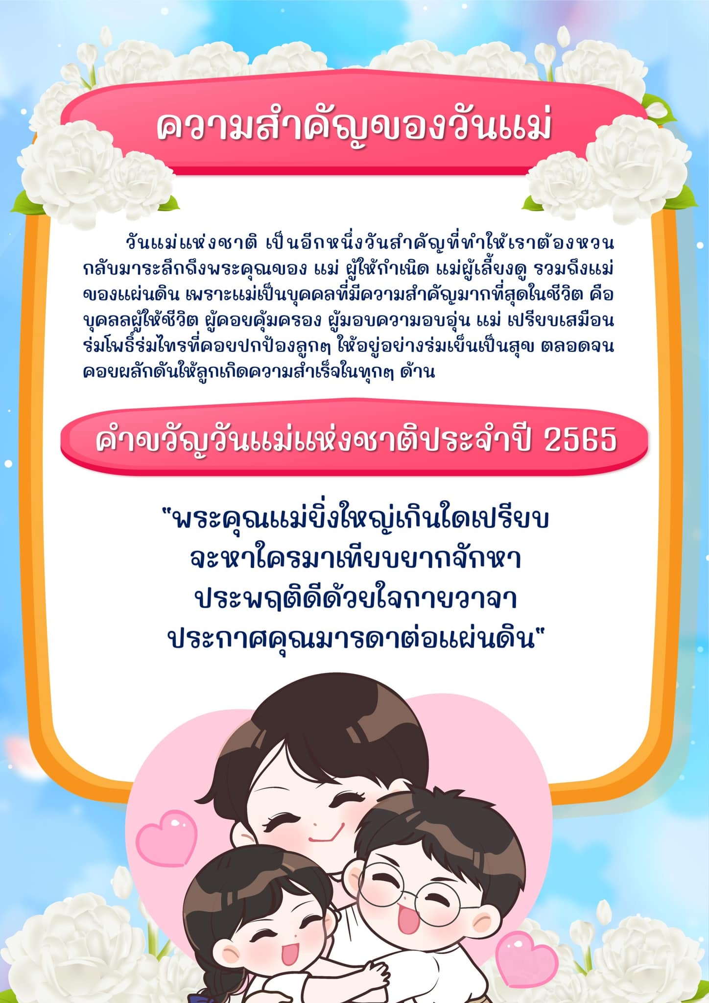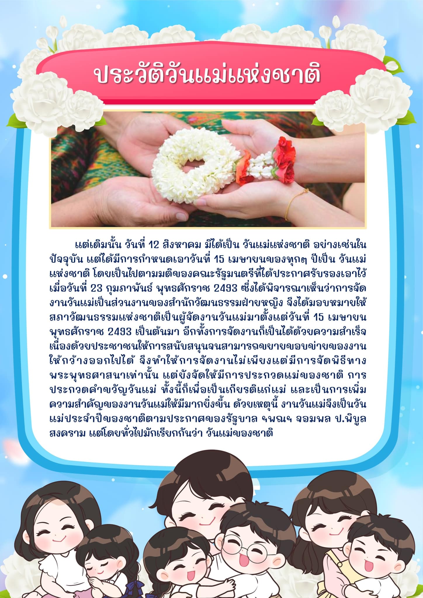 วันแม่แห่งชาติ (Mother’s Day) ตรงกับวันที่ 12 สิงหาคมของทุกปี เป็นวันสำคัญวันหนึ่งของไทย นับว่าเป็นวันคล้ายวันพระราชสมภพของ สมเด็จพระนางเจ้าสิริกิติ์ พระบรมราชินินาถ ในรัชกาลที่ 9 หรือแม่ของแผ่นดิน ..