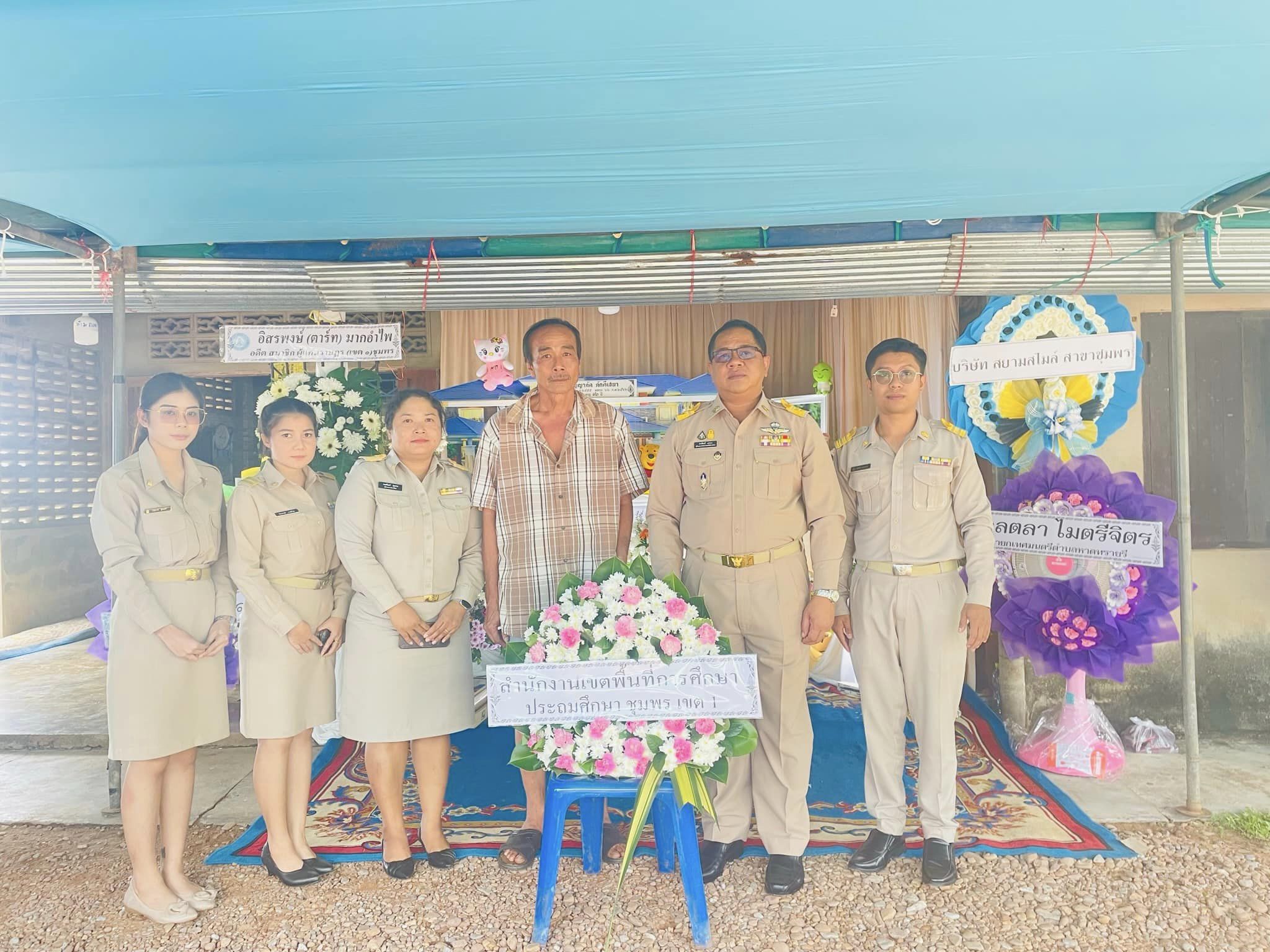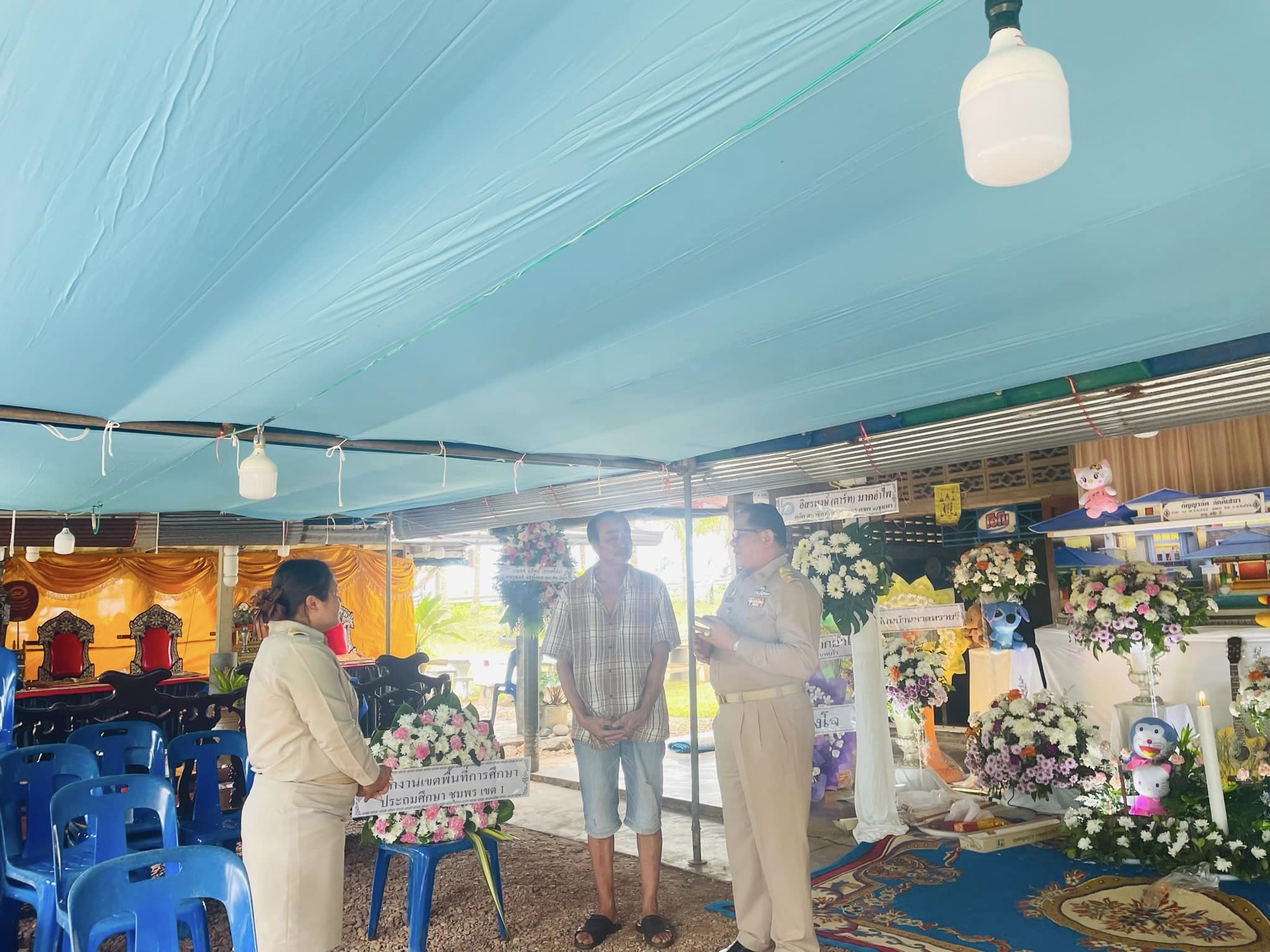 น.ส.นวลจันทร์ พุ่มพวง ผู้อำนวยการโรงเรียน พร้อมด้วยคณะครูโรงเรียนบ้านหาดทรายรี ร่วมวางพวงหรีดเพื่อเคารพศพ เด็กหญิงกัญญาภัค ภักดีเสนา นักเรียนชั้นประถมศึกษาปีที่ 6 โรงเรียนบ้านหาดทรายรี และร่วมไว้อาลัย ทางโรงเรียนขอแสดงความเสียใจกับครอบครัว เป็นอย่างสูง