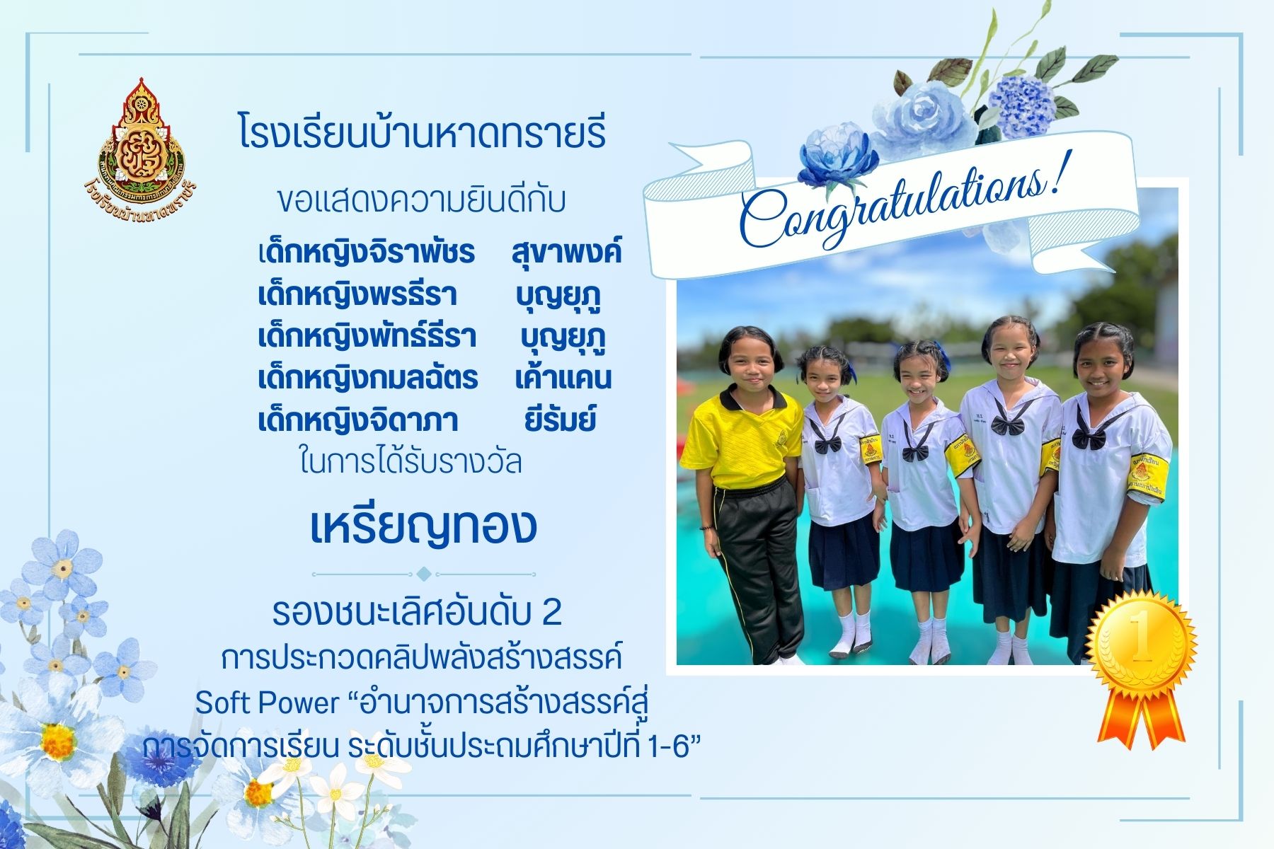 ในการประกวดสื่อสร้างสรรค์สู่การเรียนรู้ประวัติศาสตร์ หน้าที่พลเมือง ศีลธรรม และประชาธิปไตย โดยการยกระดับการจัดการเรียนรู้เชิงรุก (Active Learning) ด้วย Soft power CPN 1 เหรียญทอง รองชนะเลิศอันดับ 2 การประกวดคลิปพลังสร้างสรรค์ Soft Power “อำนาจการสร้างสรรค์สู่ การจัดการเรียน ระดับชั้นประถมศึกษาปีที่ 1-6” |