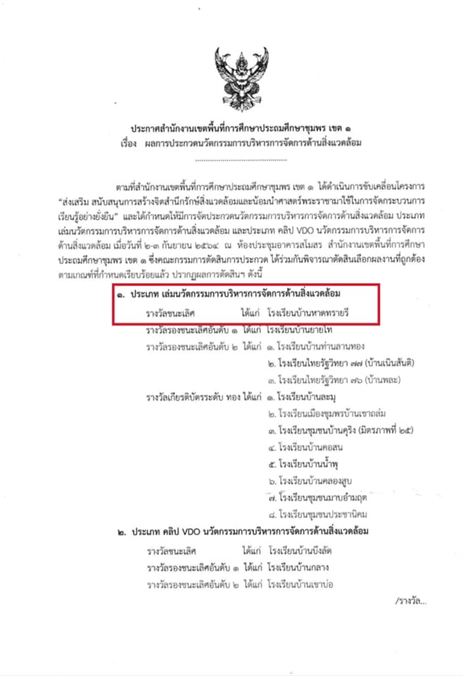 รงเรียนบ้านหาดทรายรี ได้รับรางวัล #ชนะเสิศนวัตกรรมการบริหารจัดการด้านสิ่งแวดล้อม #กระถางใบสนรักษ์โลก