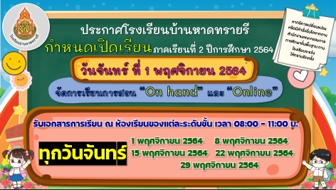 ประกาศโรงเรียนบ้านหาดทรายรี กำหนดเปิดภาคเรียนที่ 1/64 และการรับเอกสารทางการเรียน